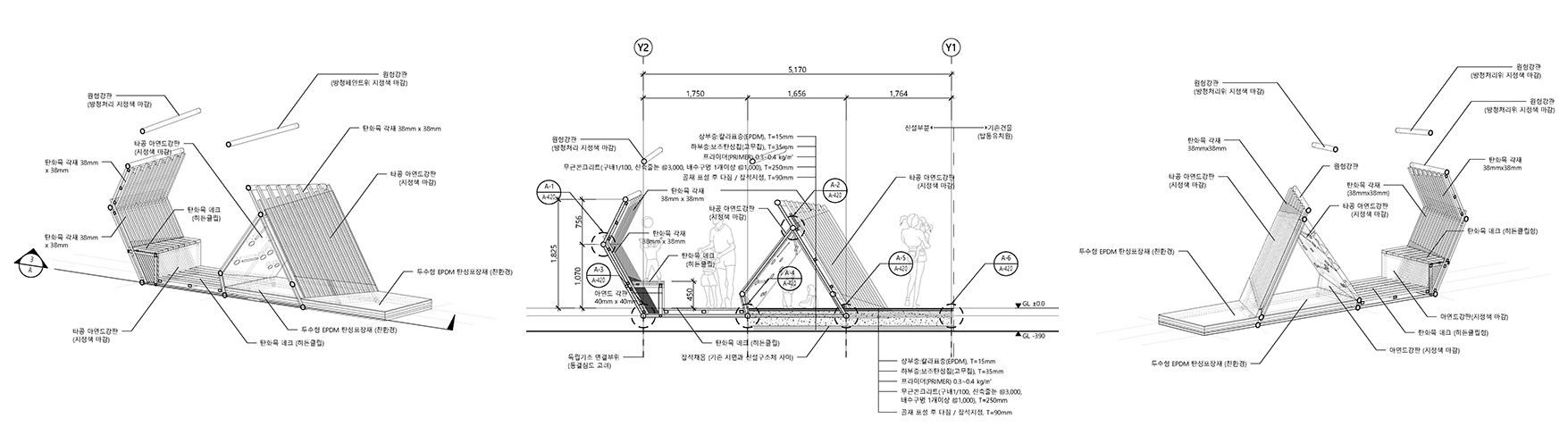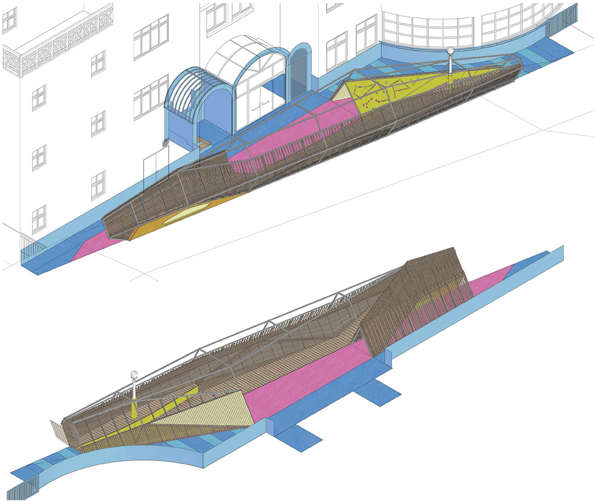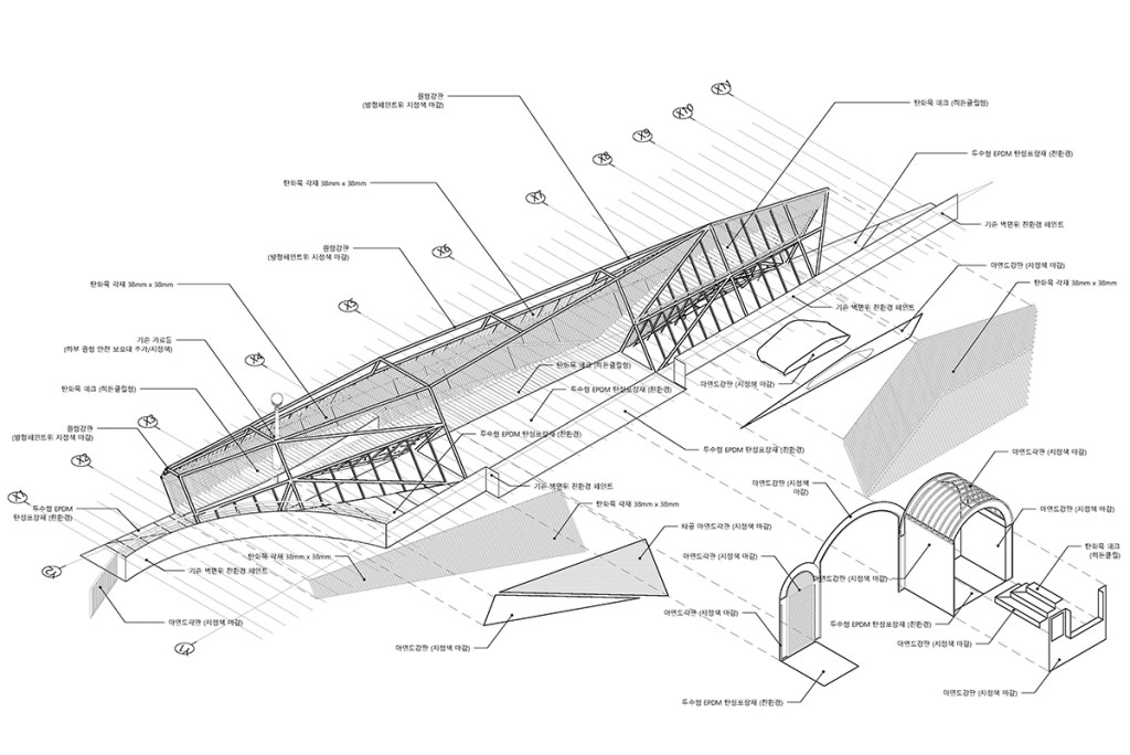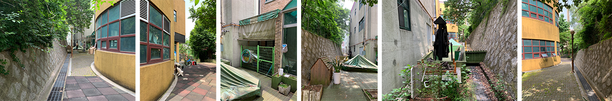 아이들은 바닥과 벽 그리고 지붕 사이를 이동하며 촉각, 청각, 시각, 후각등 다양한 감각을 사용하며 틈들 사이에서 경계의 움직임을 경험한다.